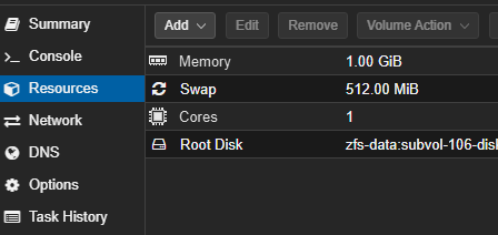Keine der hier hinterlegten Einstellungen ist später in Stein gemeißelt. In dem Container, welcher nun erstellt wird, lassen sich sämtliche Einstellungen später ändern und erweitern. Auch der zuvor ausgewählte Speicherort lässt sich ändern indem man im Container, in der Sektion Ressources, einfach die Root Disk auf ein anders Laufwerk verschiebt.