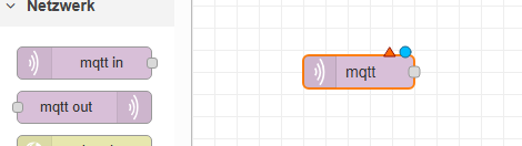 In Node-RED haben wir zwar keine Nodes zur direkten Interaktion mit ioBroker, allerdings finden wir in der Kategorie Netzwerk den Node MQTT in, welchen wir uns nun in unseren Flow ziehen.