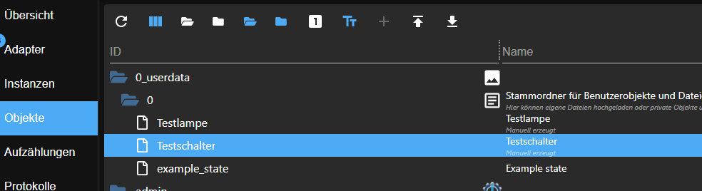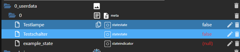 Ändern wir nun den Wert von Testschalter im ioBroker, ändert Node-RED damit auch den Schaltzustand von Testlampe.