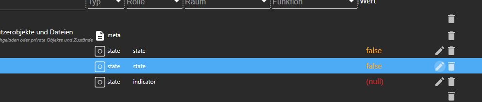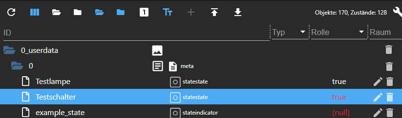 Bei größeren Installationen, wo die Schaltzustände durchaus längere Pfade und Namen haben können, können wir uns den Pfad auch einfach rauskopieren. Geht hierzu auf das Stiftsymbol hinten in der Zeile des entsprechenden Schaltzustandes.